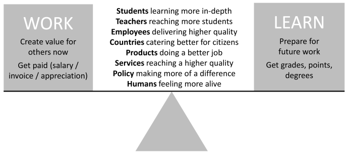 Try blending two things every week: helping others (work) and developing yourself (learn). That blend is what we call work-learn balance. It creates meaning, momentum, and improvements in your performance, while making learning practical, personal, and unforgettable. Everything we do is about fostering this balance.