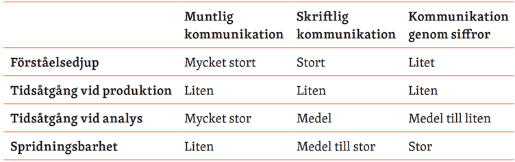 Tabell 2.7. Jämförelse mellan muntlig, skriftlig och sifferbaserad kommunikation.